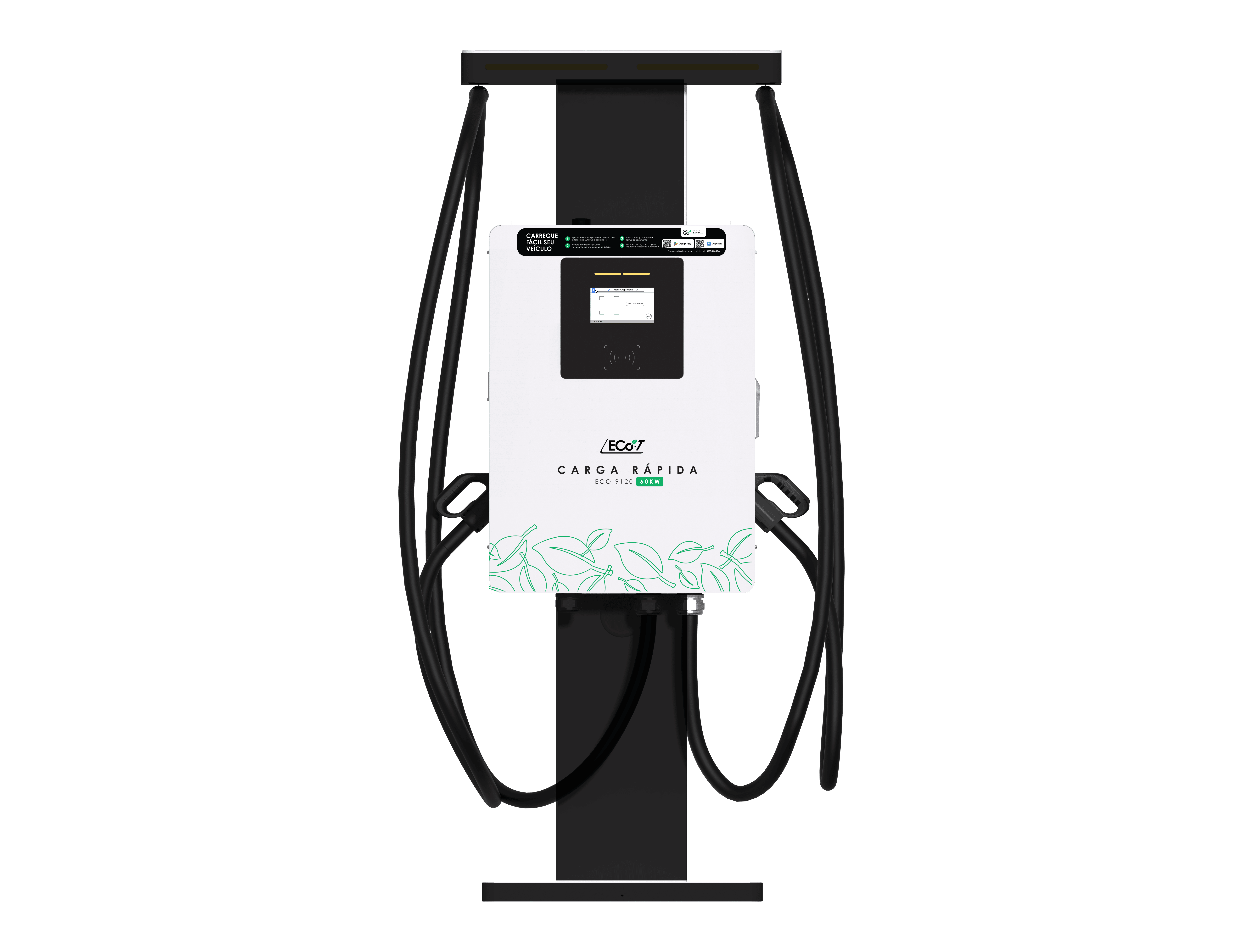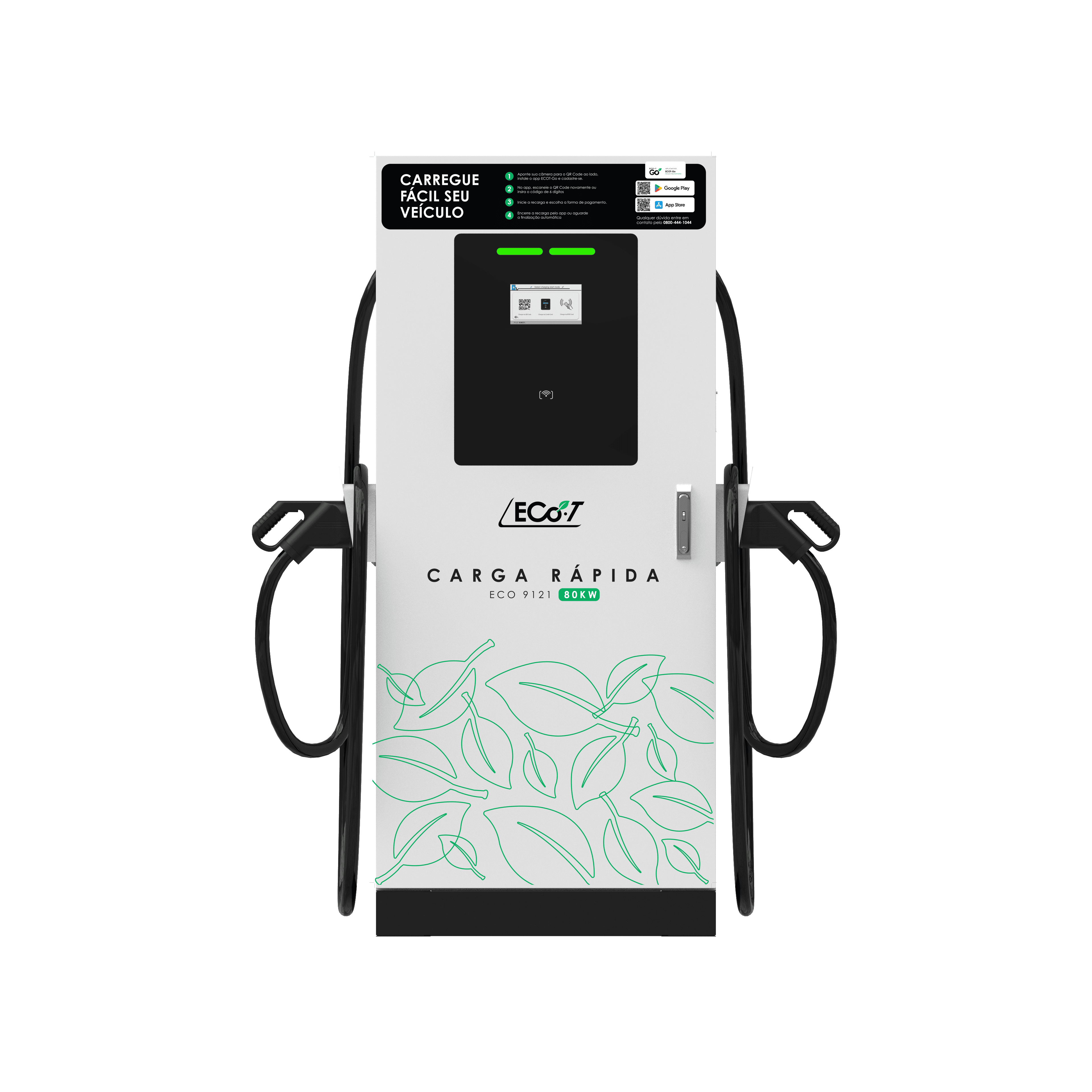 O ECO 9121 é um carregador rápido DC projetado para locais com grande fluxo de veículos e necessidade de recarga rápida.